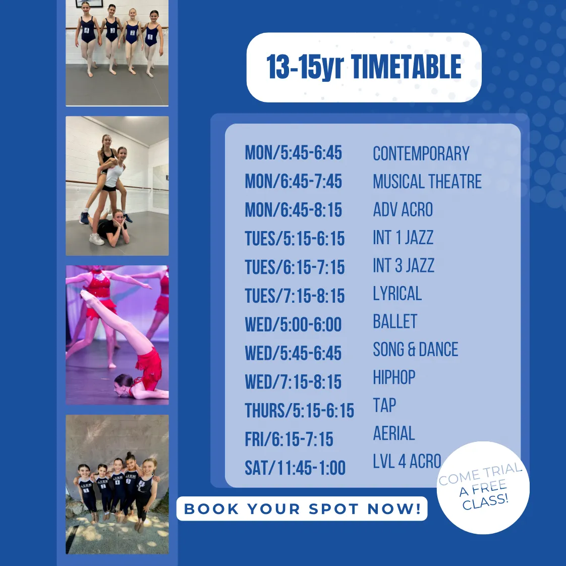 25 INTER 13-15YR CLASSES