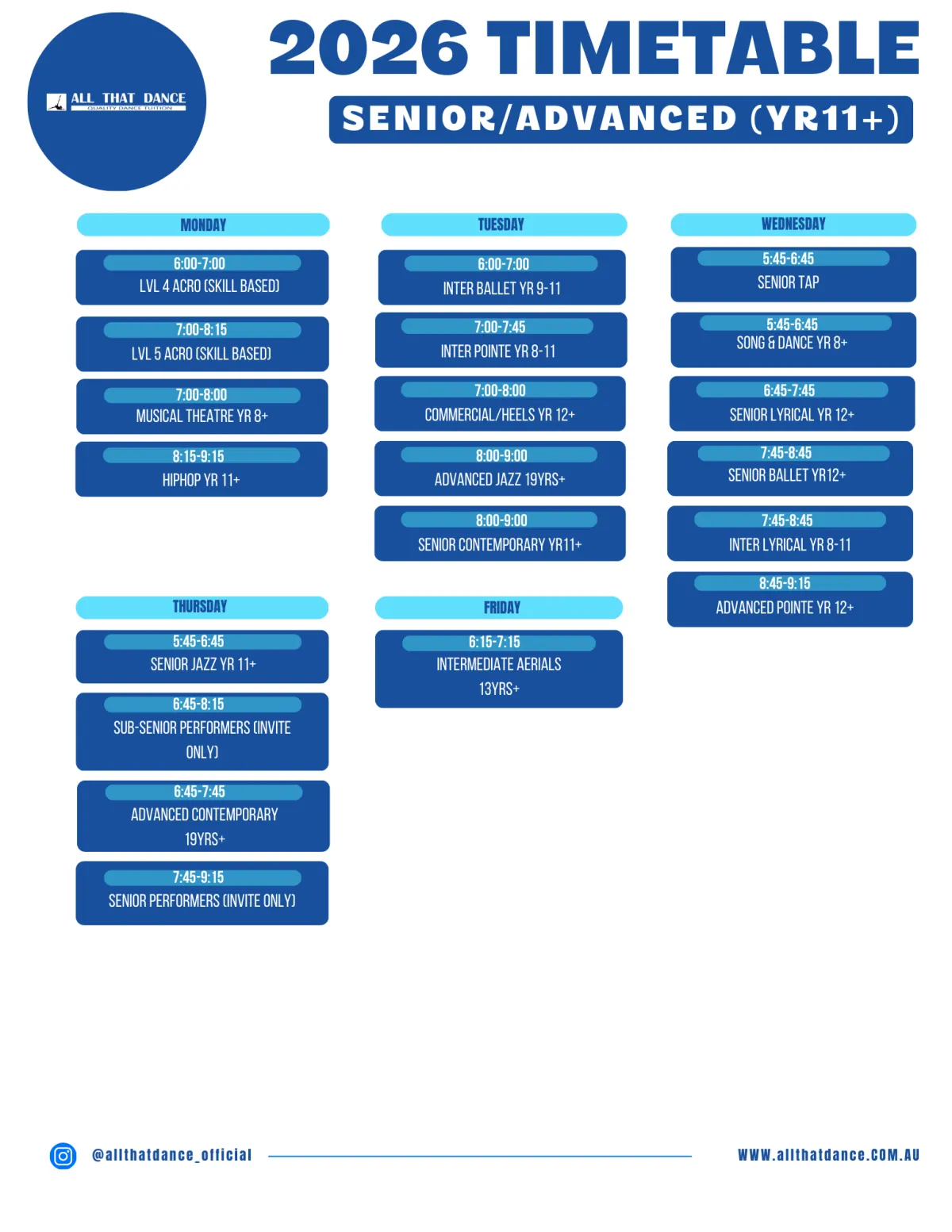 2026 SENIOR YR 11+ CLASSES